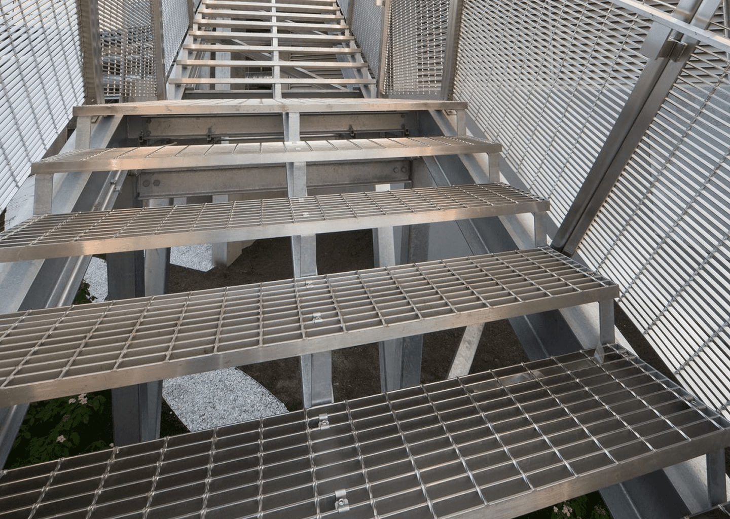 Los peldaños para escaleras se fabrican con el mismo material de las rejillas, ofreciendo características prácticas y funcionales como paso de luz, resistencia al agua, propiedades antideslizantes, ligereza y durabilidad sin necesidad de mantenimiento.